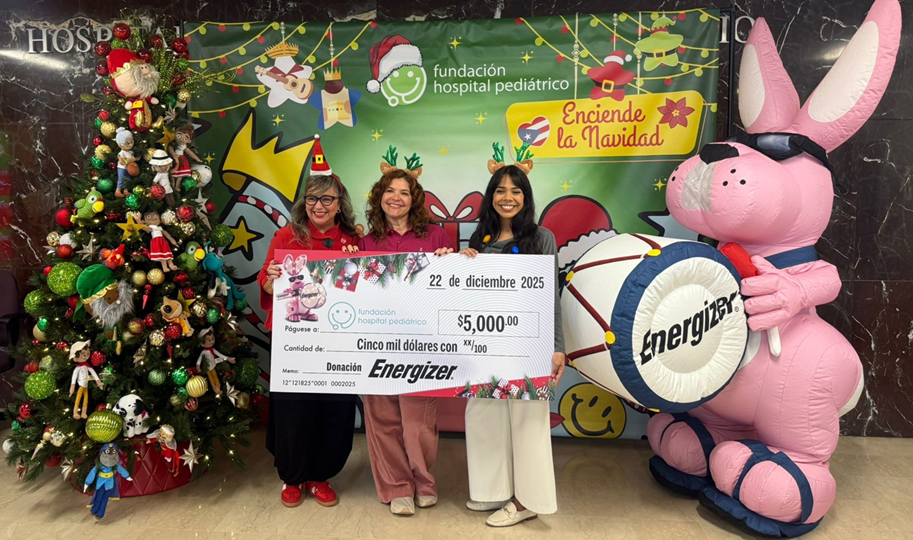 Como parte de la iniciativa de recaudación de fondos del “Hospital de Juguetes”, la Fundación del Hospital Pediátrico recibió por parte de la marca Energizer un donativo de $5,000 a con el fin de fortalecer la infraestructura operacional, contribuir a las mejoras del Family Center y que la entidad continúe brindando el acceso a los servicios médicos que los pacientes y sus familias necesitan para mejorar la salud y la calidad de vida.